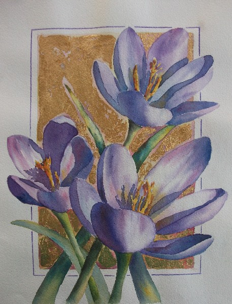 “Crocus and Gold Leaf” Watercolour and Gold leaf 37 x27cm |