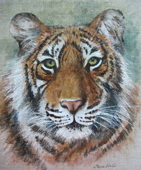 “Linen Tiger” watercolour on linen canvas 20 x 25cm |