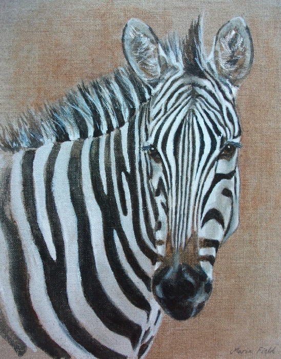 “Linen Zebra” watercolour on linen canvas 20 x 25cm |